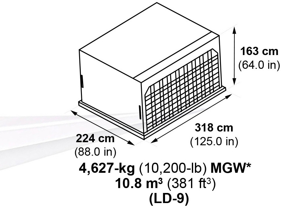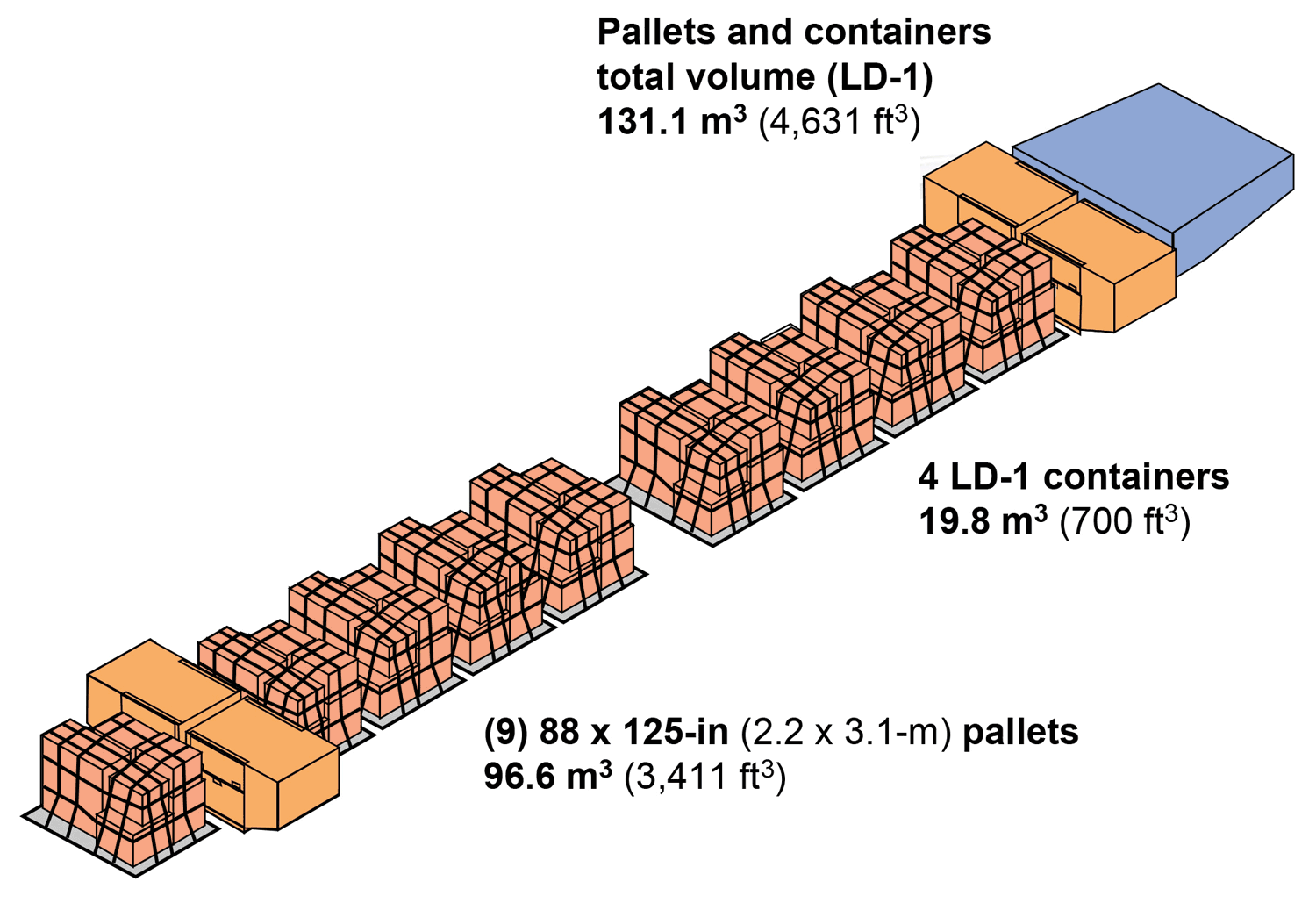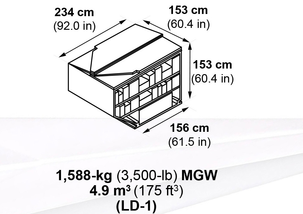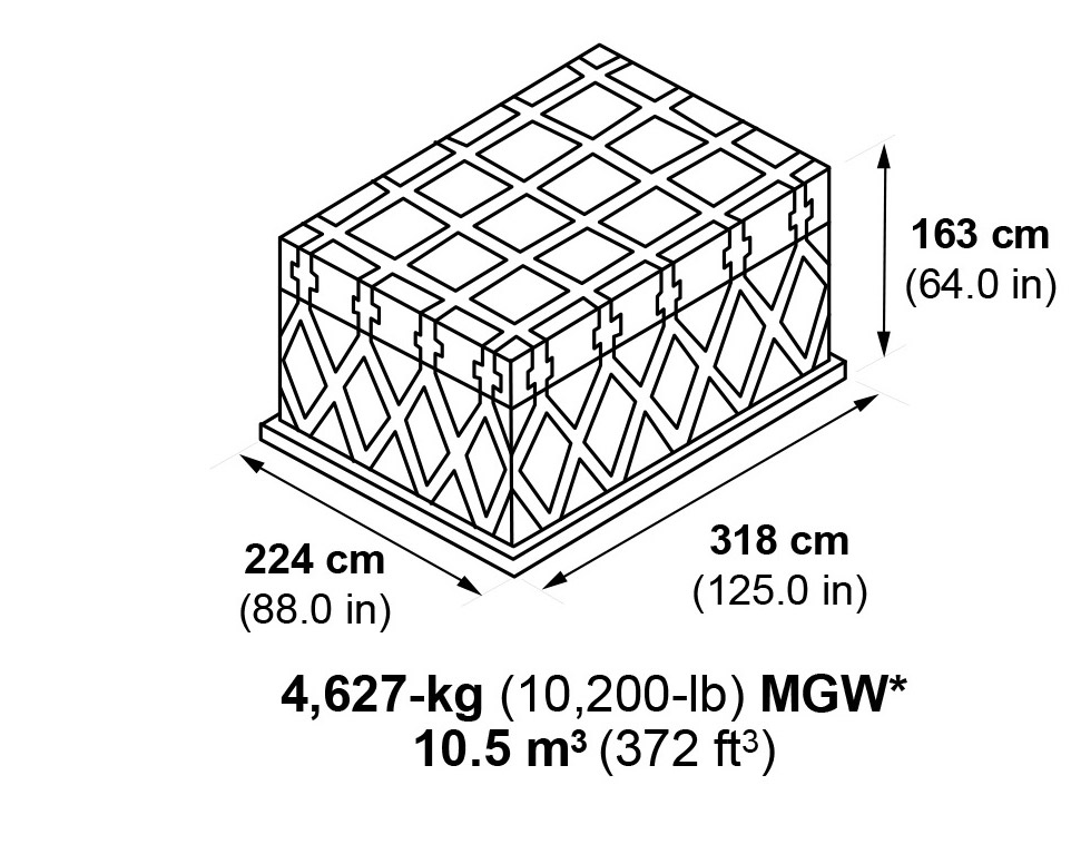196- x 125-in pallets/LD-1 containers.
