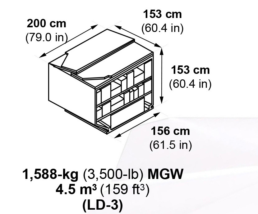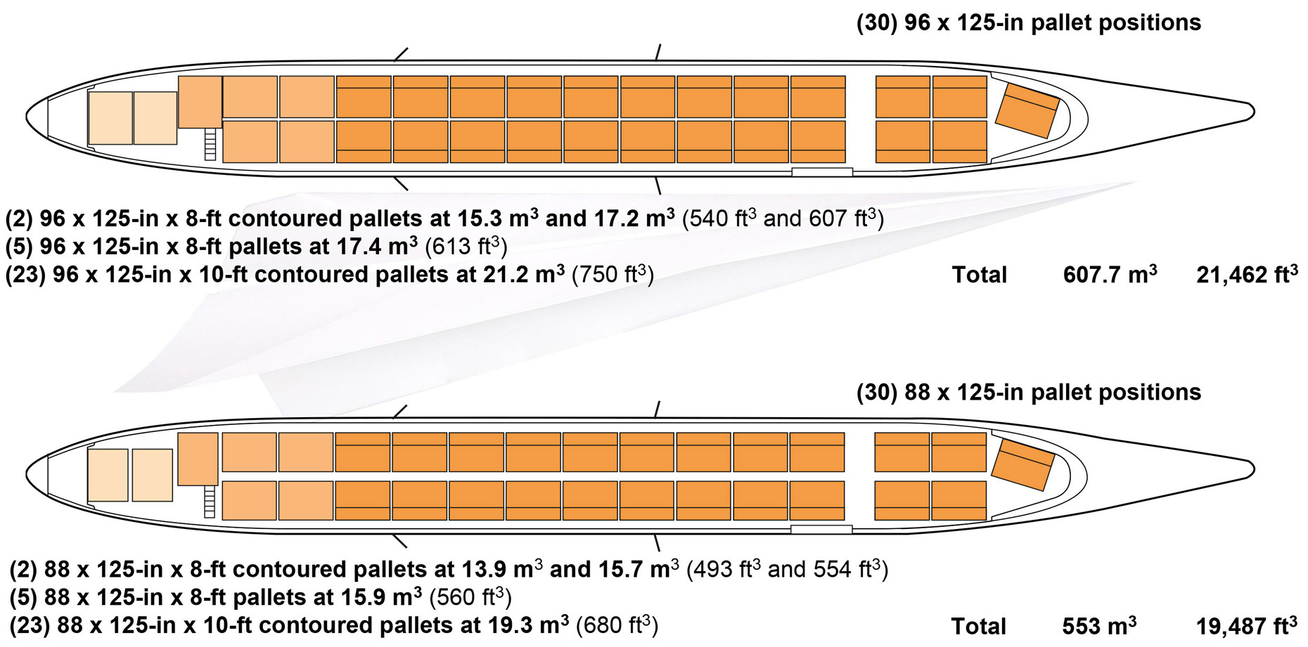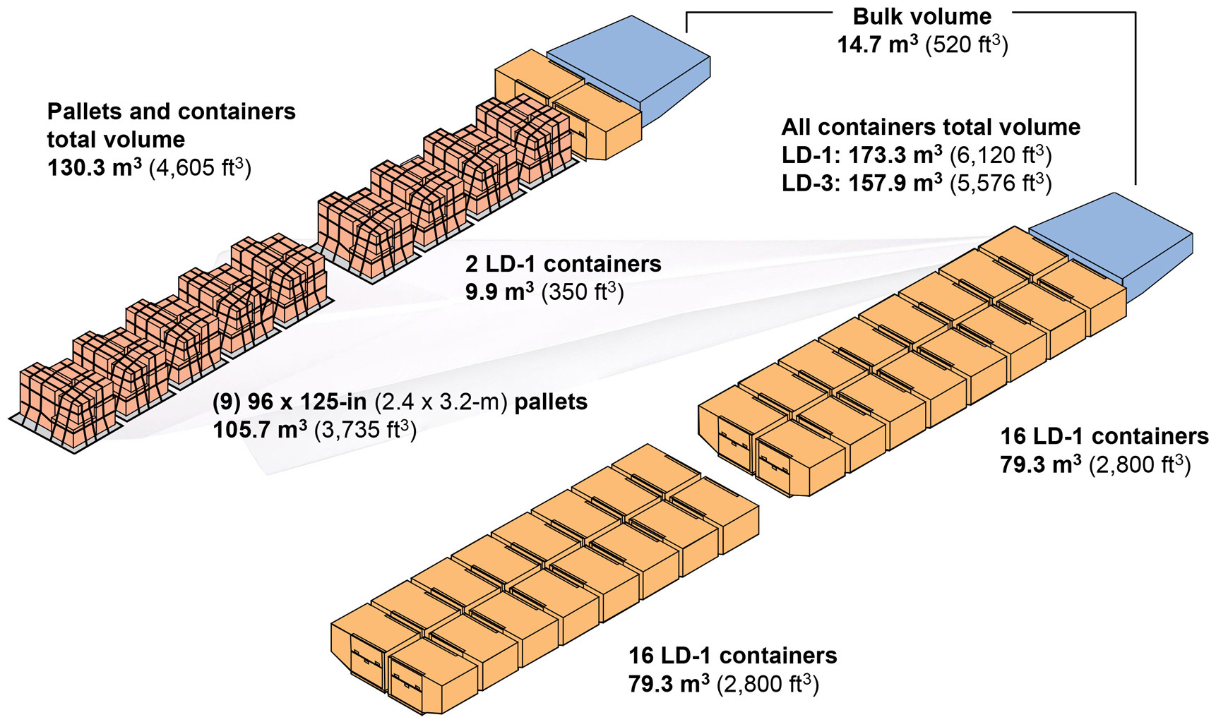 196- x 125-in pallets/LD-1 containers.