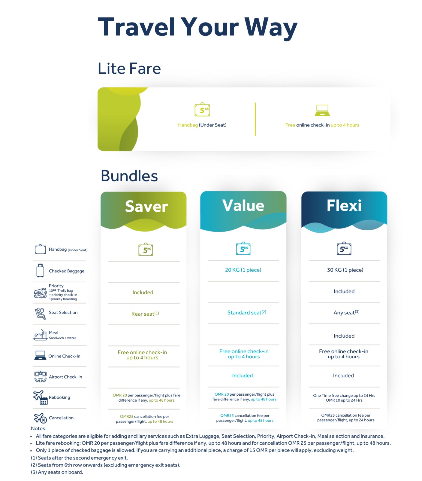 The Lite Fare offers basic services, including a 5KG carry-ob (under the seat), free online check-in up to 4 hours before departure.